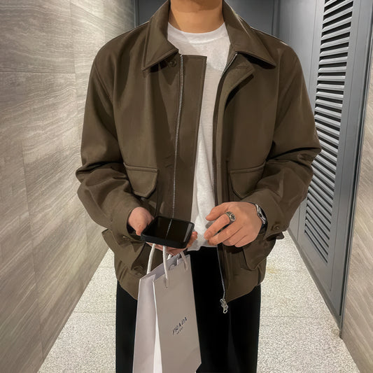 Men's Loose Retro Tooling Polo Collar Jacket