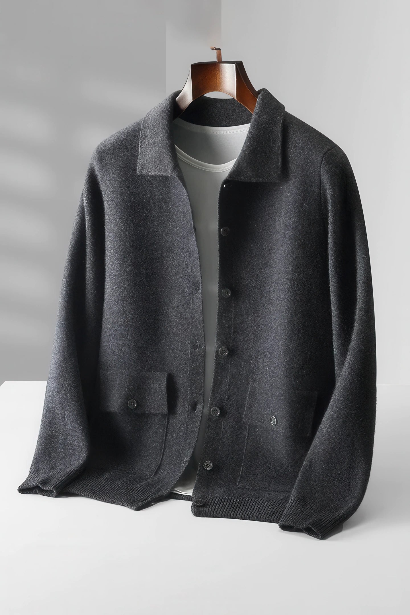 Men's Polo Collar Solid Color Wool Cardigan