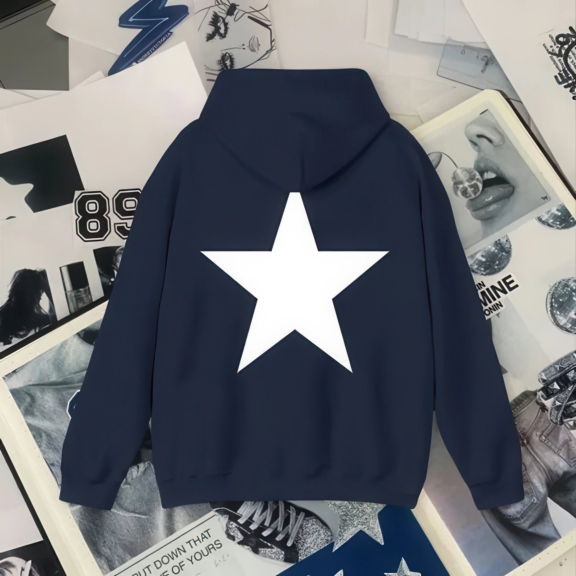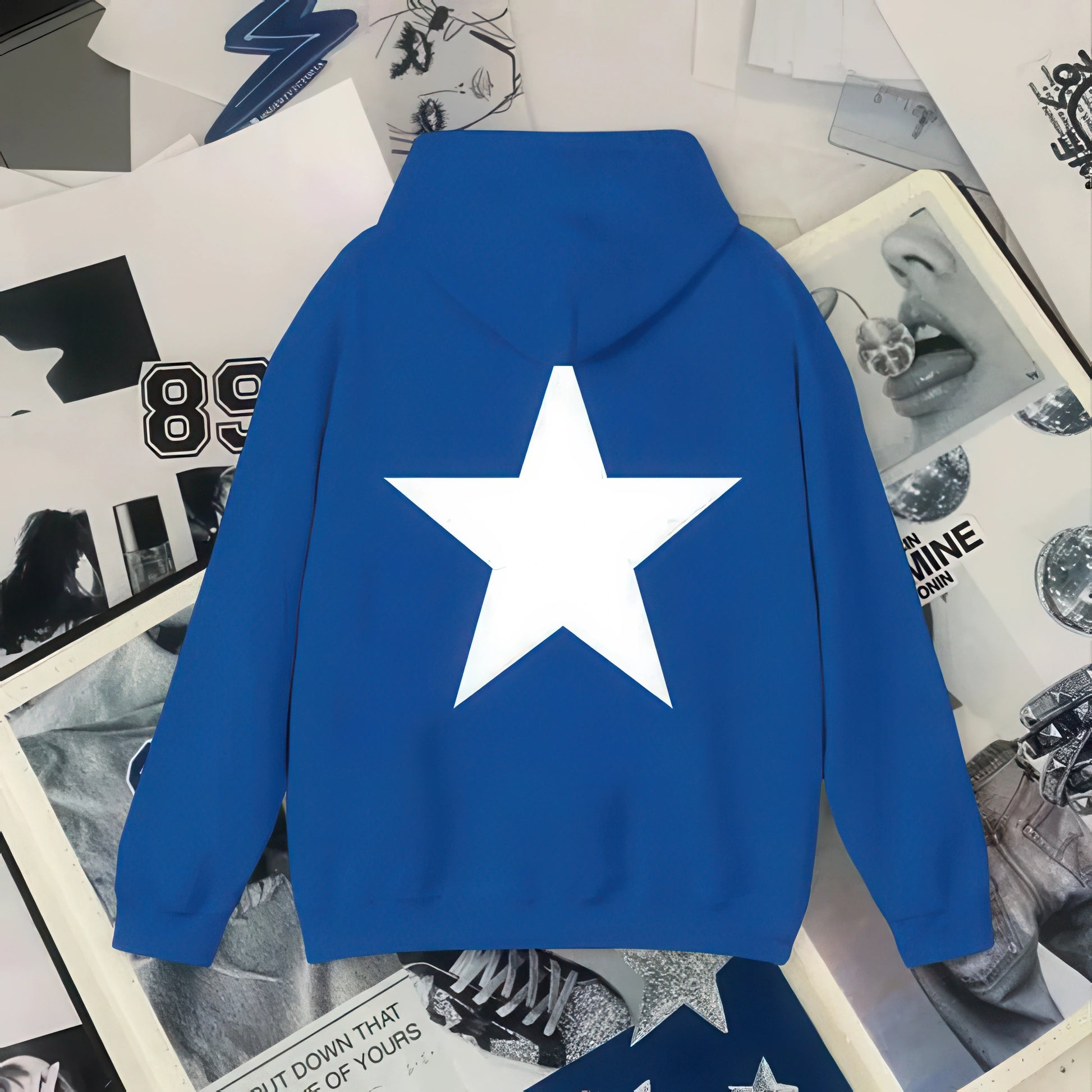 Y2K Aesthetic Star Print Hooded Sweatshirt for Men